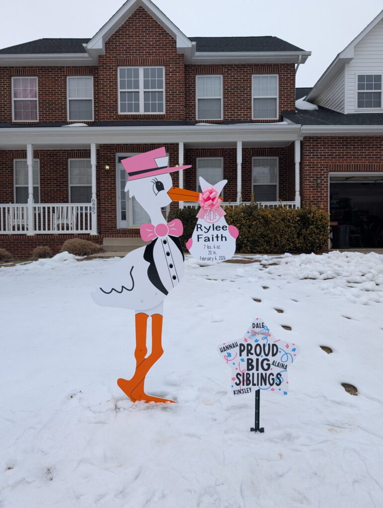 St. Mary’s Storks offers the only stork sign birth announcements in St. Mary’s County and lower Calvert County.